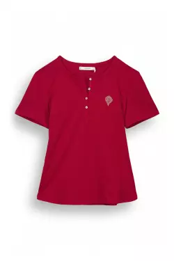 Футболка с короткими рукавами, из хлопка, с вышитым сердцем на груди. Носите ее с любимыми брюками из коллекции и создайте собственный комплект. Вариантов так много! С воротником хенли и планкой на пуговицах спереди. Красный цвет. При покупке наших хлопковых изделий вы поддерживаете наши инвестиции в инициативу Better Cotton. Рост модели: 174 см