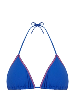 Топ-бикини с треугольными чашками с контрастной окантовкой. Выберите яркое настроение с этим топом, который можно совмещать с соответствующими трусиками, чтобы создать уникальный образ. Бретели для завязывания на шее и спине. Съемные чашки и без косточек. Выберите счастливое настроение! На модели размер S